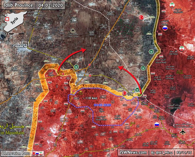 #SAA captured Jadida Talafih, Zahbiyah, Tal Touqan and besieged the#Turkish army Observation post#Idlib#Syriapic.twitter.com/zOAhd72LsB