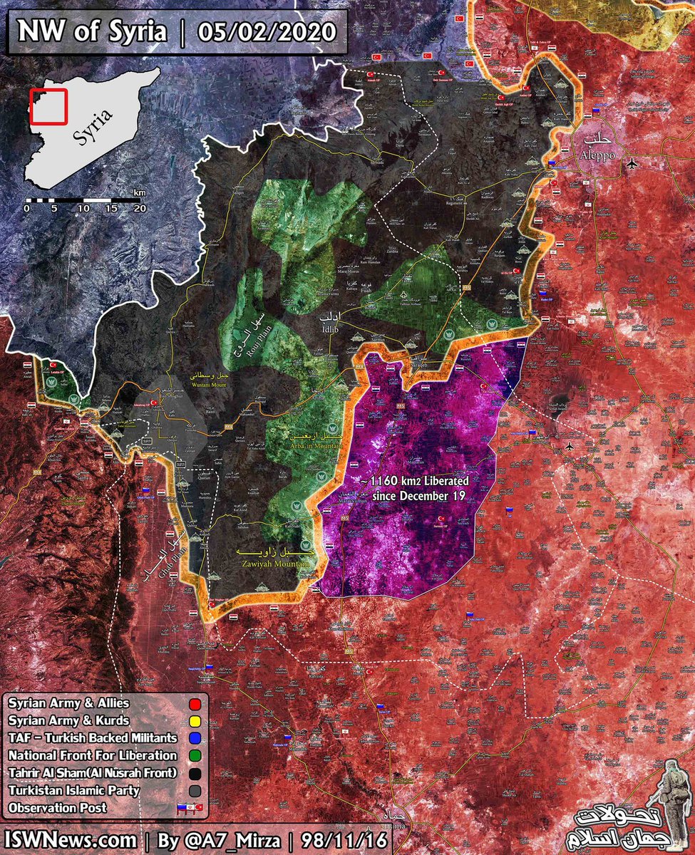 #SAA operation#IdlibDawn from December 19 so far, approximately 1160 km2 of#Idlib region have been captured.#Sarqib also under government control#Syriapic.twitter.com/JbrA3aehKg