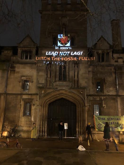 We are so so grateful for the support of Extinction Rebellion Oxford, who have been protesting outside St. John’s in solidarity with our occupation. If you can, please join them and show your support!