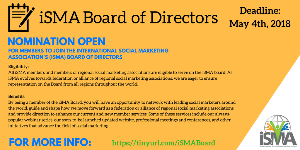 @isma_org Board of Directors applications. Interested in getting more involved with#SocMar this is the perfect opportunity more info and application: https://tinyurl.com/iSMABoardBedankt, Twitter gebruikt dit om je tijdlijn te verbeteren. Ongedaan makenOngedaan maken -
