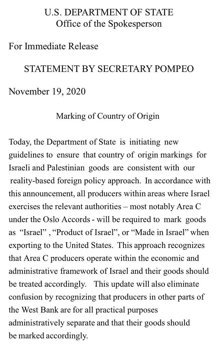 Add this to list of policies that must be immediately reversed by new Biden/Harris Admin. These “new guidelines” not only aid Israel’s land theft & war crimes but are intended to deceive the American people. The US should not be dealing in goods made in occupied territory.pic.twitter.com/xyIV55i56s