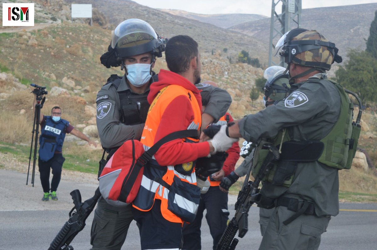 Palestinian and Israeli activists protested illegal settlements in Kafr Malik today, a village where illegal settlers have seized farmland and water resources. Israeli forces attacked the protest with tear gas and stun grenades, injuring 2 and arresting a volunteer medic.pic.twitter.com/RhpkXAyRpH