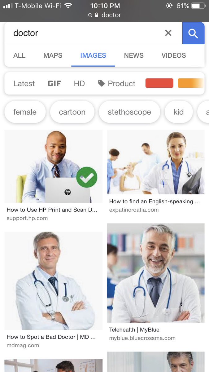 Also @Google can you do something about this? When I search “doctor” the images are almost all men and when I search “nurse” the images are all women.pic.twitter.com/jH48gFdVH2