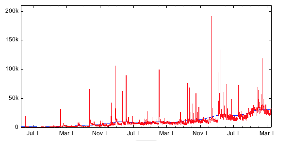 biggest spike is the essay he wrote immediately prior to starting yc in 2005. literally ppl thinking "who is this guy??" and reading his most recent post on the homepage.