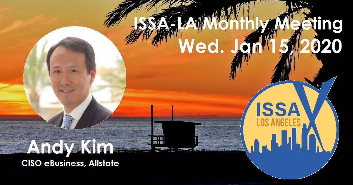 Come join us for dinner on January 15 this week (Wed) at Netflix as we start the year with a talk by Andy Kim, CISO eBusiness at Allstate speaking on "All Eyes On You: Cyber security in the Age of Innovation"! Starts @ 6:15 PM! https://issala.org/event/issa-la-january-monthly-dinner-meeting/ …pic.twitter.com/L44Dk4uTmM