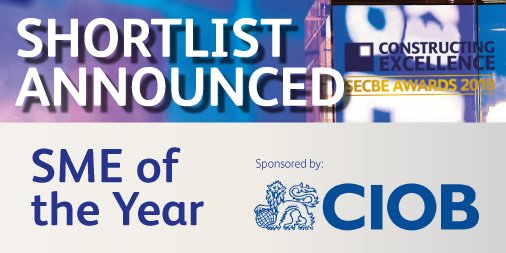 @ACGarchitects,@Golden_Houses,@itcconcepts,@Playle_Partners,@WarnerSurveys & Roe Timber Frame Ltd are all shortlisted in the#SME of the Year category at the@SECBE_UK Constructing Excellence Awards! Congratulations! Sponsored by@theCIOBpic.twitter.com/AkaAAz3jN0