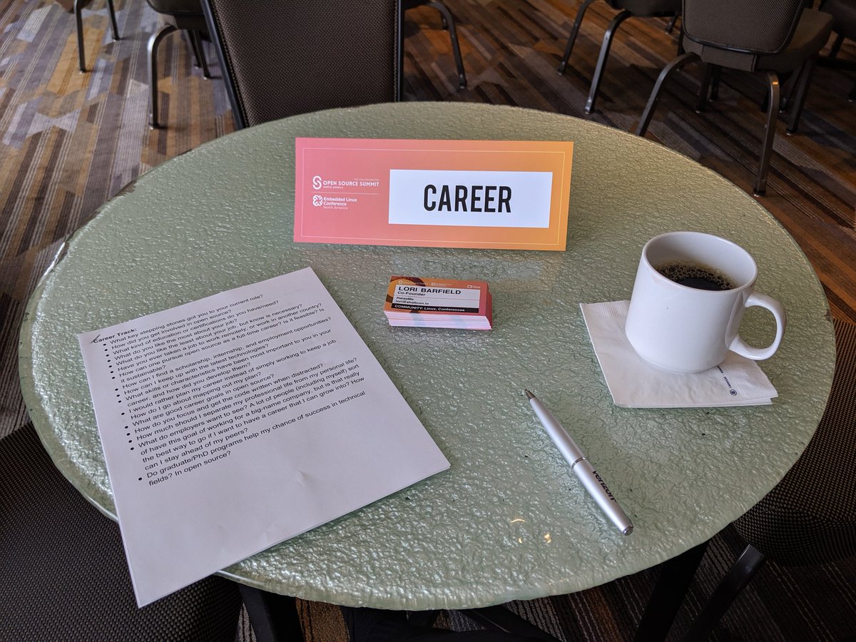 Very nice setup complete with business cards at the Speed Mentoring event at #OSSummit.