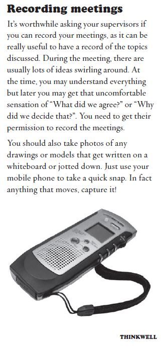 Ask your supervisor if it's OK to record parts of your meeting. This allows you to concentrate on what is being said. And to check out any confusing bits later. This can be especially useful if English isn't your first language.
