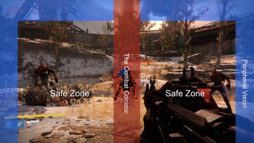 For those interested in the mentality around The Combat Corridor and player's eye positioning in the screens space in Destiny / shooters.pic.twitter.com/caMkmvv5FY