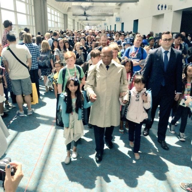 My favorite thing about John Lewis is that at ComicCon, he cosplayed as his younger self, wearing the same coat and backpack he wore at the March on Selma and led kids in a little march around the convention.