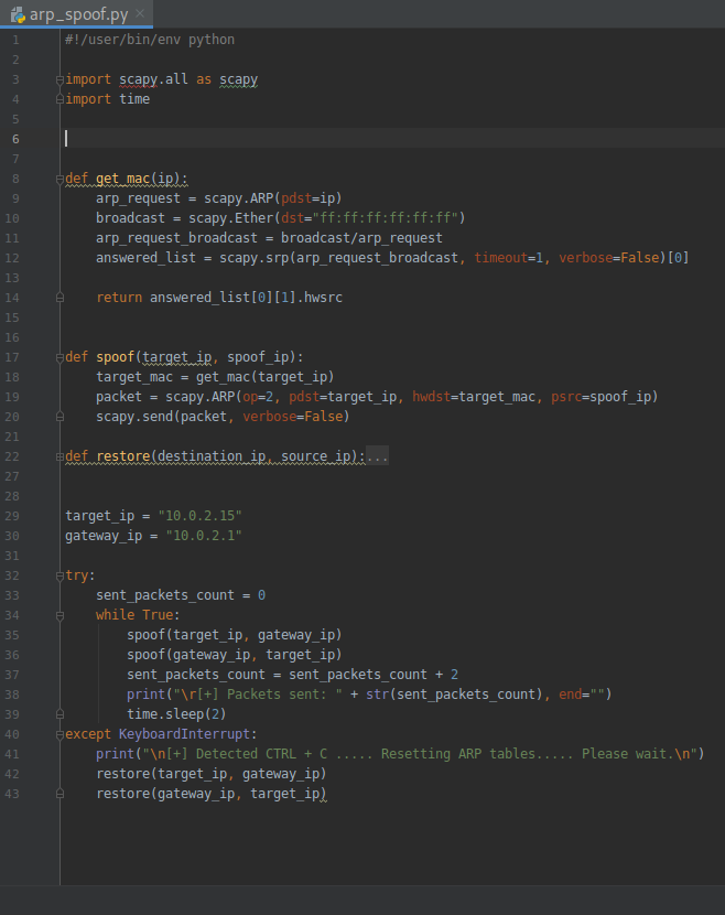 Wrote my first program/script just now. It wasn't completely on my own, I followed along with material but I made sure to understand everything inside, here it is! It's an ARP spoofing script. Gonna learn about packet sniffing next