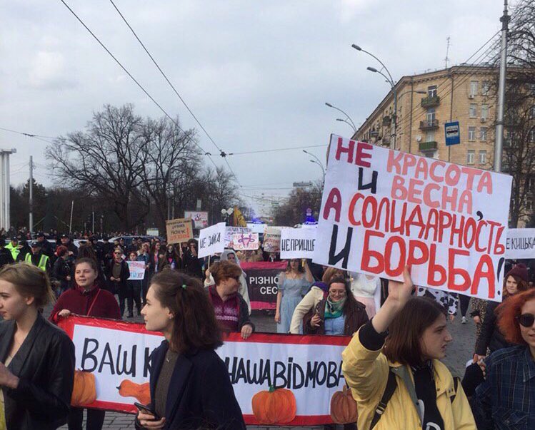 #Харків містом пройшов марш жіночої солідарності з гаслами «Нумо, Харків! Права замість парків!», «місце жінки — всюди», «Права жінок – права людини». За фото дякуємо Василісі Гайденкоpic.twitter.com/IgUocrk8sB