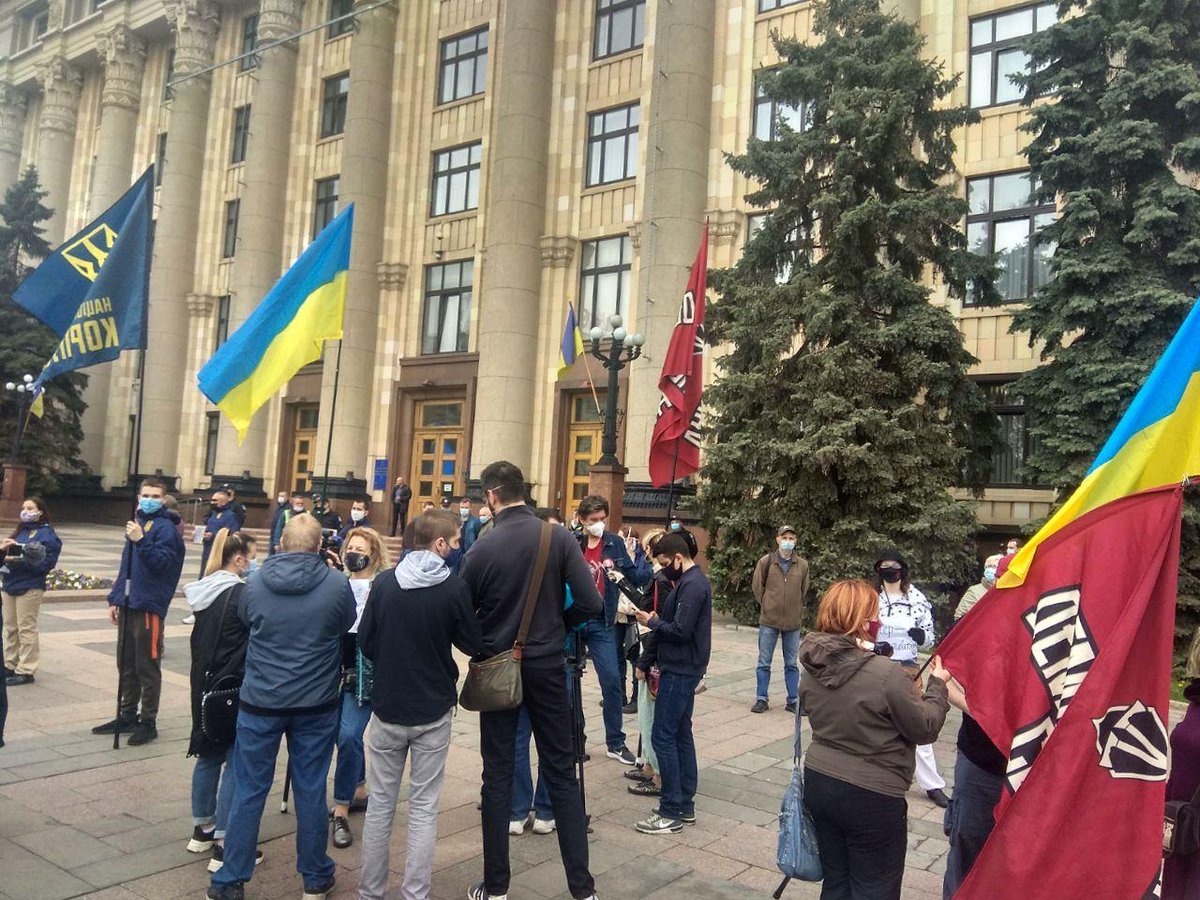 Харків – без Жукова! Зараз біля окружного адмін суду зібралися харків"яни з вимогою скасування рішення міської ради про перейменування проспекту Петра Григоренка в проспект Жукова.pic.twitter.com/Z8grk3TN7y