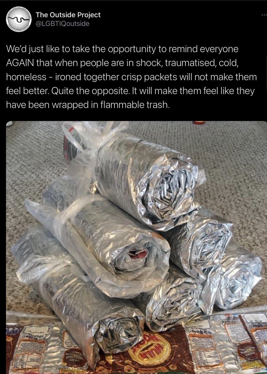 Whilst I applaud the sentiment of providing blankets I think this is really not sending the right vibe to homeless people. An actual blanket which is warm and washable would be a better gift than effectively saying we made one out of rubbish for you.