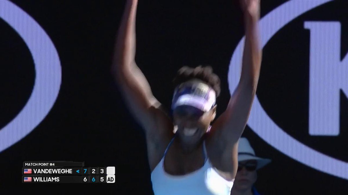 Bucurie de copil care castiga un meci. La 37 de ani :) Mult prea autentica Venus.https://twitter.com/AustralianOpen/status/824494496997978113 …