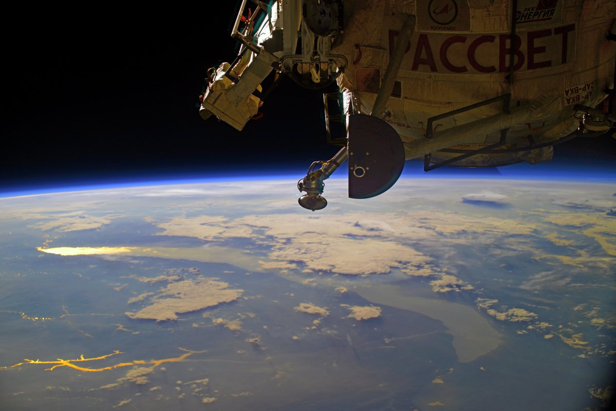 #Dawn over Lake Baikal. The module seen in the photo is the Mini-Research Module Rassvet (lit. 'dawn'). Make it double! :)