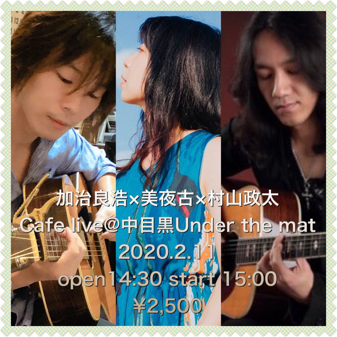 加治良浩(ギターソロ)×美夜古×村山政太+加治良浩(ツインギター)アコースティックカフェライブ 2500円pic.twitter.com/hVrp75h4Am