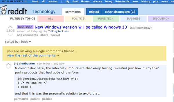 Rumor calls out Windows 95 as the reason Microsoft skipped version 9 http://engt.co/1vyIX7m pic.twitter.com/8tAjFSBAv7