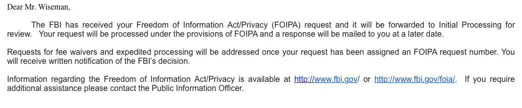 Oh snap, the FBI acknowledged my FOIA!