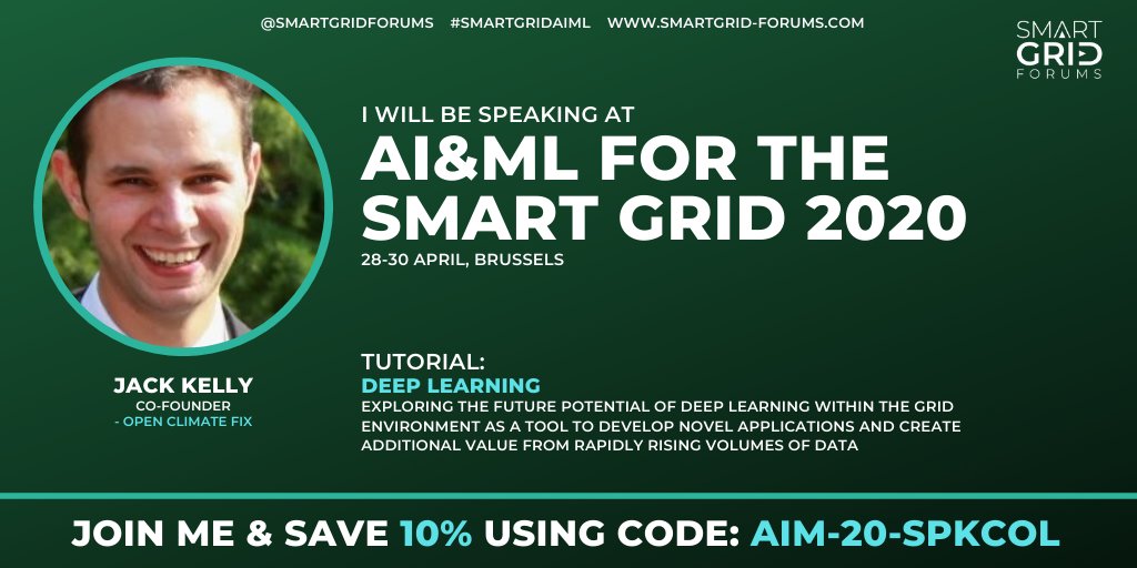 I'll be giving a tutorial on deep learning at the AI & ML for the Smart Grid conference, 28-30th April, Brussels; organised by