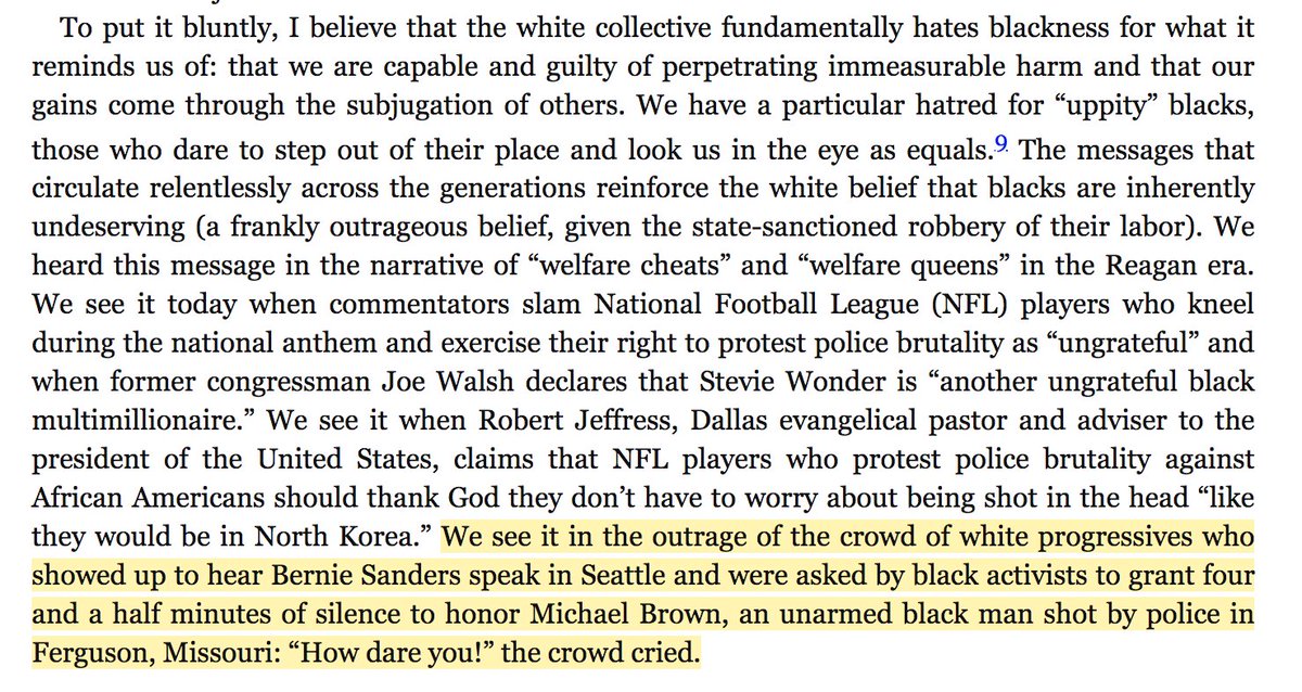 In her blockbuster best-seller "White Fragility," Robin DiAngelo condemns Bernie supporters as an example of the "white collective" exhibiting a fundamental hatred for "blackness"pic.twitter.com/MoleEdwYis