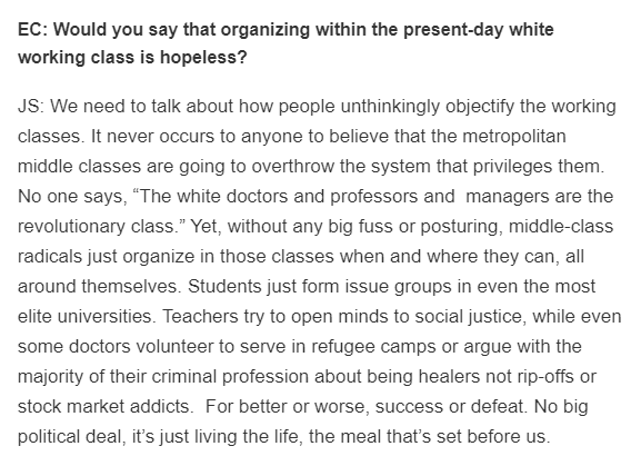 J. Sakai, of all people, sounding incredibly prescient on the insanity of middle-class, DSA-style and online left-wing politics (2000).pic.twitter.com/XIvhmKIsRI