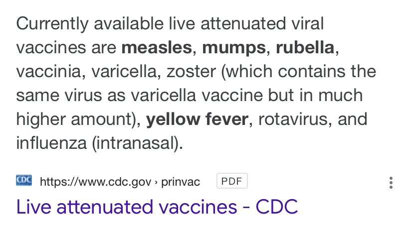 Live viral vaccines also instruct your cells to make things. Several of these appear to be routine. These viruses will still culture in your system, but they're bred for low pathogenicity. To my understanding mRNA vaccines only produce one generation of "infected" cells per dose. https://twitter.com/ClickingSeason/status/1379454303304290310 …pic.twitter.com/Z6bOk8prbH