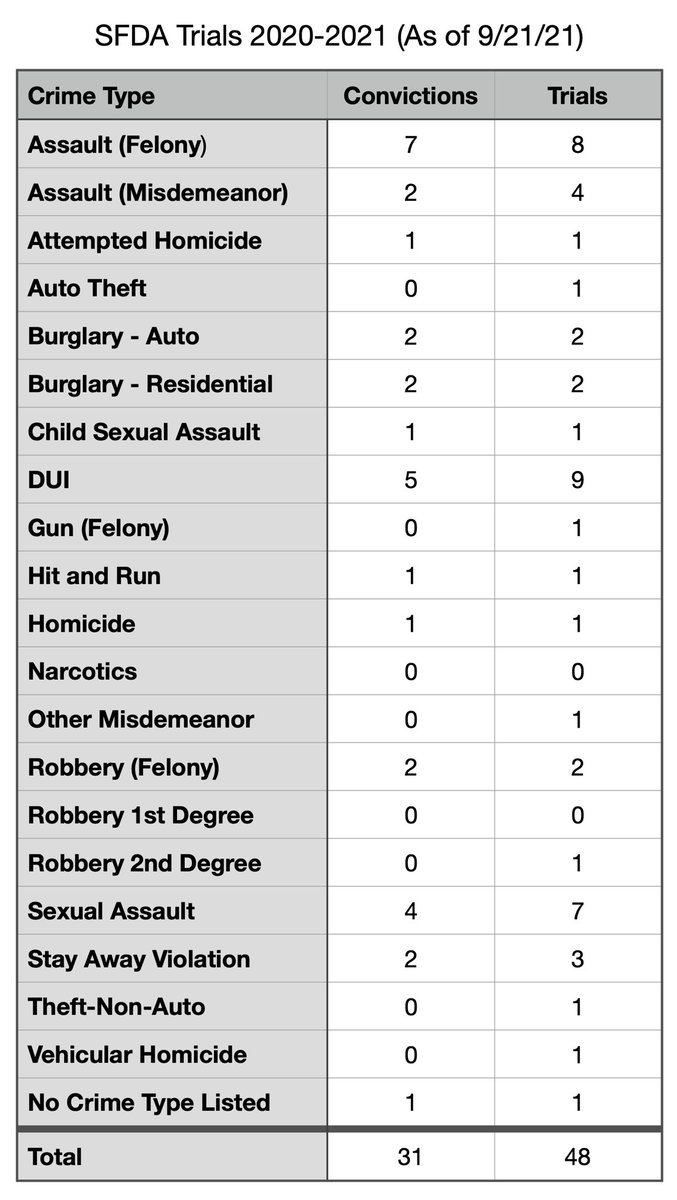 Here are Boudin’s actual trials since taking office in Jan. 2020pic.twitter.com/4Nefu3V2Yv