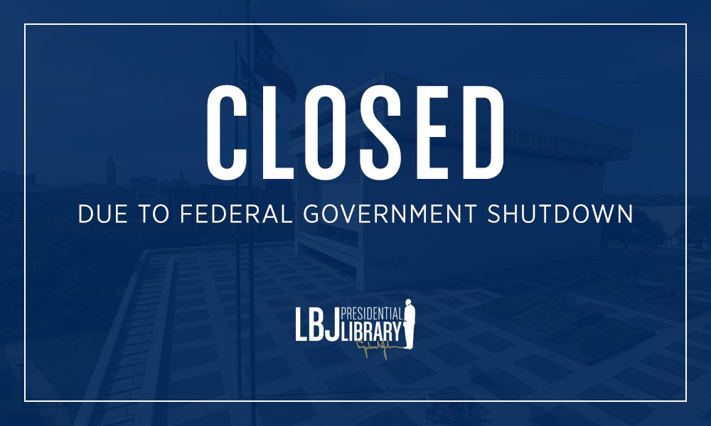 Notice: Due to the federal government shutdown, the LBJ Presidential Library, including the Research Room and online store, is closed until further notice. Please stay tuned to http://LBJLibrary.org for any updates.pic.twitter.com/f34NJWyQbw