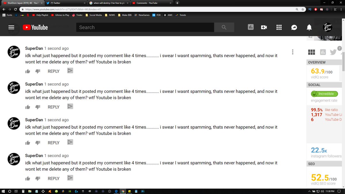 Why does it keep posting my comment 4 times.... I am only posting it 1 time but if spams it 4 times randomly. I dont want anyone thinking I am spamming there comments. It wont even let me delete any of them for some reason. @YouTube @YTCreators @TeamYouTube @YouTubeGamingpic.twitter.com/dEQUgZjKEB