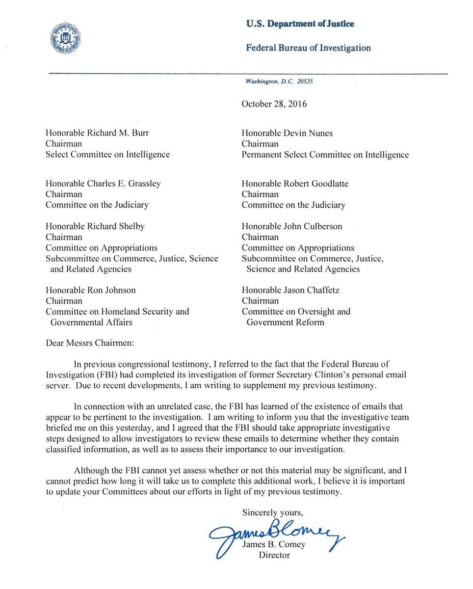 not sure Comey intended for letter to be shared like that? Afaik came from Chaffetz etc