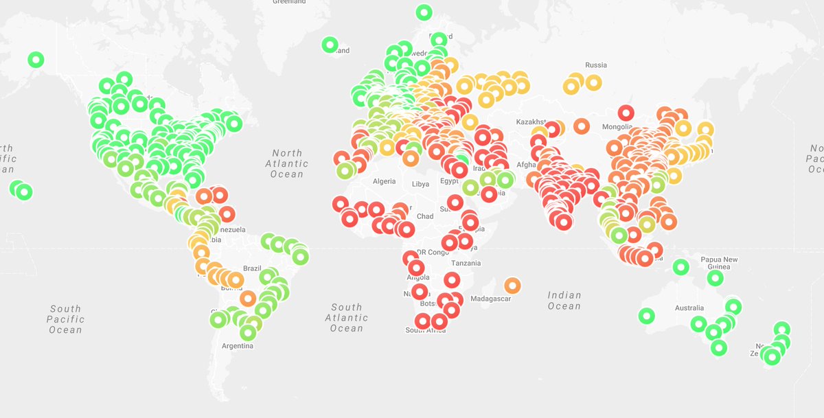 happiness data to @nomadlist, here's the world's happiness distributed on a map