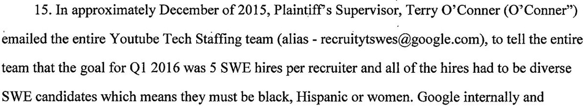 Wow, a new lawsuit by a former recruiter for Youtube details how they discriminate against white and Asian men in recruiting/hiring. He was punished and ultimately fired when he complained about these practices. https://www.scribd.com/document/372751852/Wilberg-v-Google-Recruiter-that-was-fired-for-refusing-to-discriminate …pic.twitter.com/liTGGVlq2m