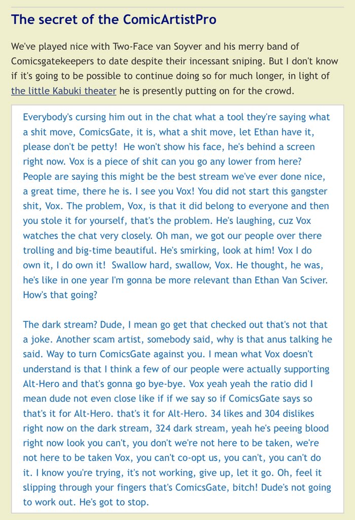 Nah, #ComicsGate still stands up, taller than ever. Vox was dispatched yesterday, his stunt and “factoids” exposed.