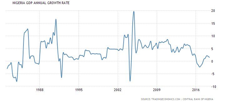 Seems to me since China started investing abroad around 2012, Nigerian growth rates haven’t expanded at all. Looking at the graph it seems to me GDP growth is being outpaced by population growth.