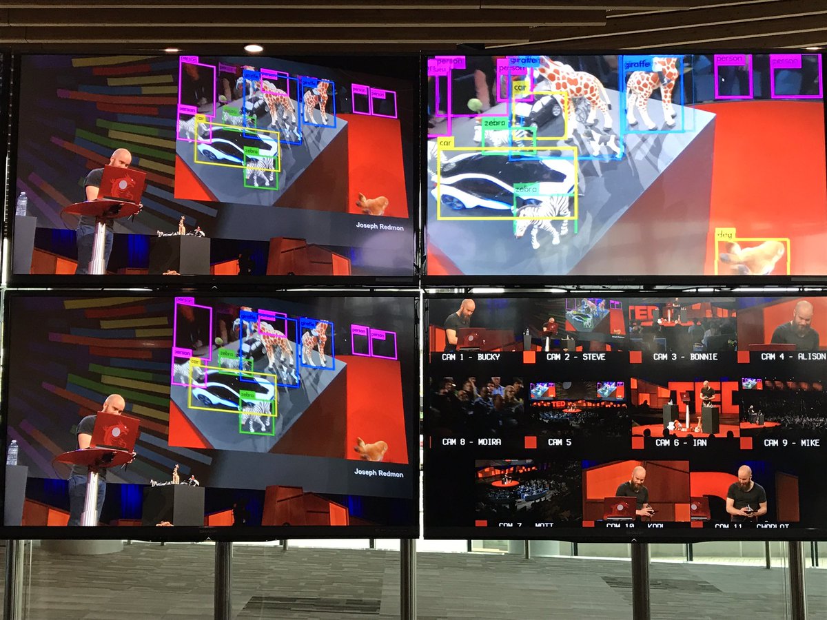 Joseph Redmon from U Washington showing his open source "Darknet" neural net for simul multi-object image recognition
