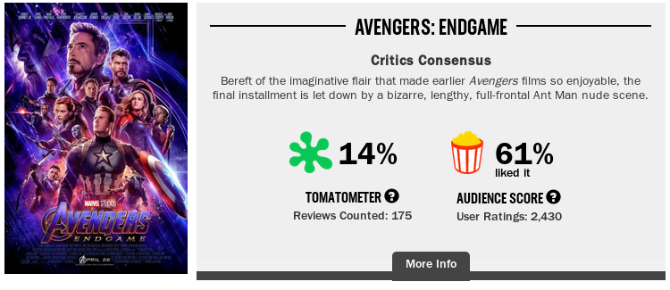 Just saw Avengers: Endgame. Wow. Two observations - 1) I didn’t even know Disney owned the rights to Mr Bean 2) Bold choice to let his bumbling capers take up a full 40 minutes of the movie. Not sure it paid off