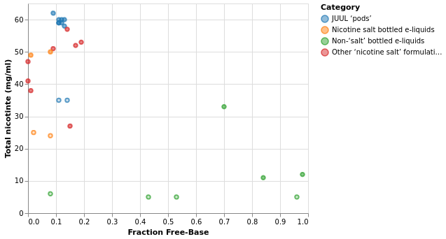 An alternative would be to further simplify by not labelling points, and instead using shape to represent the 5 categories used in Table 1, like this (but without the contours etc.): Someone interested in the Nic_tot/alpha_fb of a specific product can look it up in Table 1.pic.twitter.com/q4O9tWgyCQ