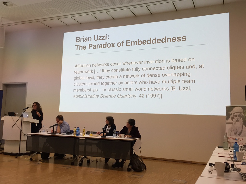 She recommends to check out this article "Collaboration and Creativity: The Small World Problem" by
