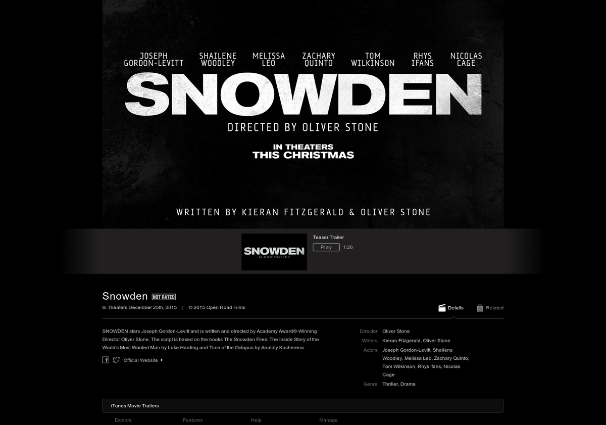 Snowden (The Movie): Oliver Stone's biography of Edward Snowden http://www.producthunt.com/tech/snowden-the-movie … via