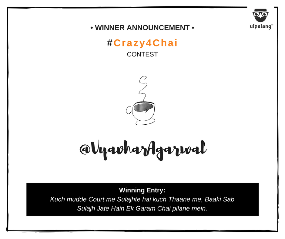 #crazy4chai winner with us... And we're super amused with d winning entry :)@VyavharAgarwal inbox address pls :)pic.twitter.com/CPrBrl0FQY