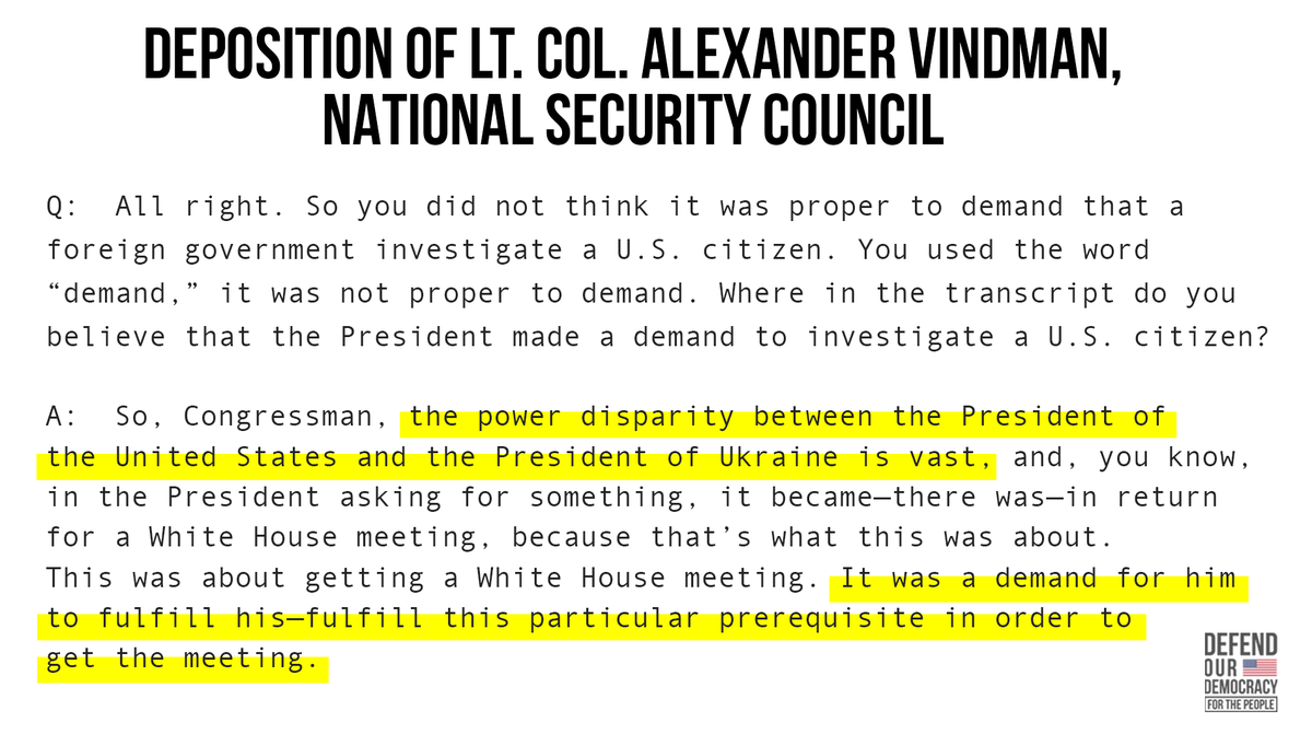 Lt. Col. Alexander Vindman from Trump’s own National Security Council explains the pressure Trump was applying in his call with Ukraine: #DefendOurDemocracypic.twitter.com/n16LWALgkT