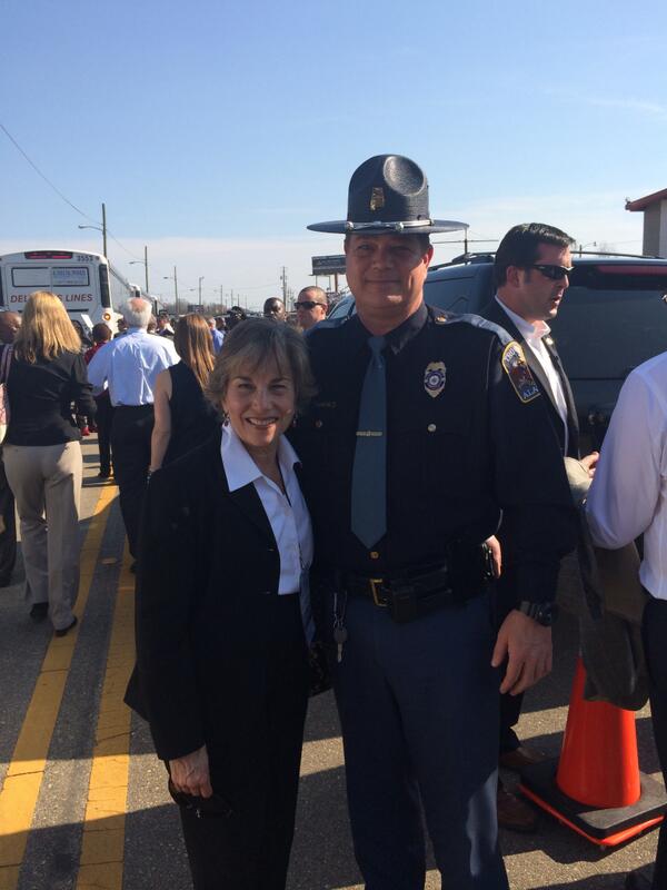 w/ one of the State Troopers who was protecting marchers. 50 years ago troopers were beating marchers @FaithNPoliticspic.twitter.com/W9CDCa8J23