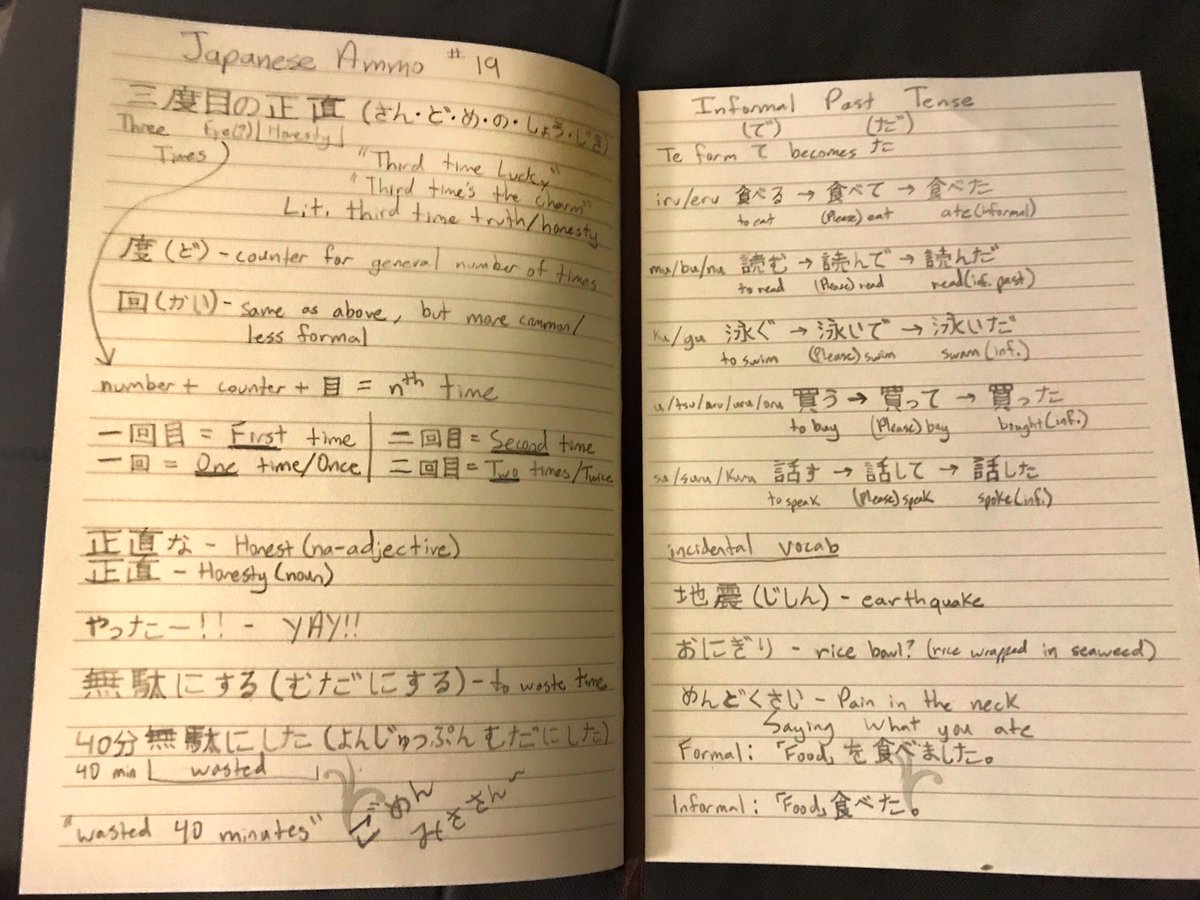 @japaneseammo https://youtu.be/Xp9s1NyXjoM Here are some notes for lesson 19