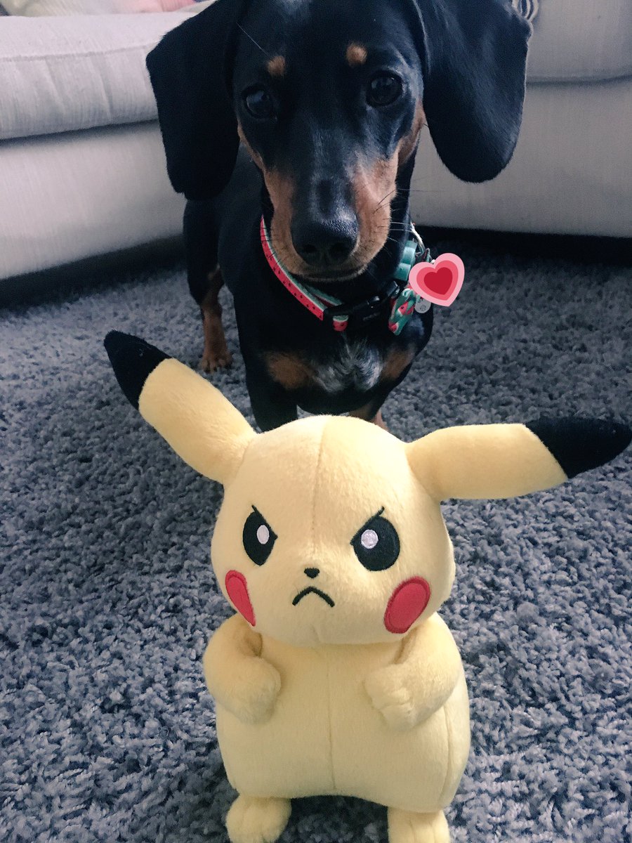 かわいい♡ Dachshunds and Pikachu are the best creatures on earth. ダックスとピカチュウが地球で一番の生き物だと思うwhttps://twitter.com/DachshundMillie/status/896074851730968576 …