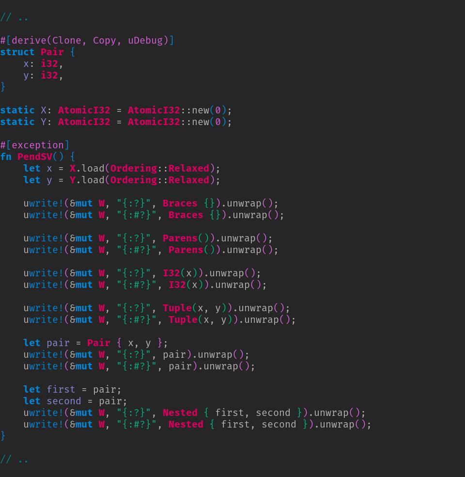 It took me forever but I have finally released v0.1.0 (not a beta pre-release) of `ufmt`, a (6-40x) smaller and (2-9x) faster alternative to `core::fmt`. In this release the family of `uwrite!` macros works on stable thanks to `proc-macro-hack`! https://crates.io/crates/ufmt/0.1.0 …https://twitter.com/japaric_io/status/1126046642673717248 …