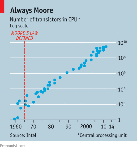 More, more Moore: the anniversary of the longest-surviving forecast in tech history http://econ.st/1b8wxgN pic.twitter.com/KFFTTS7m7B
