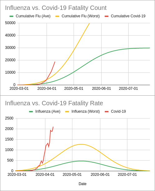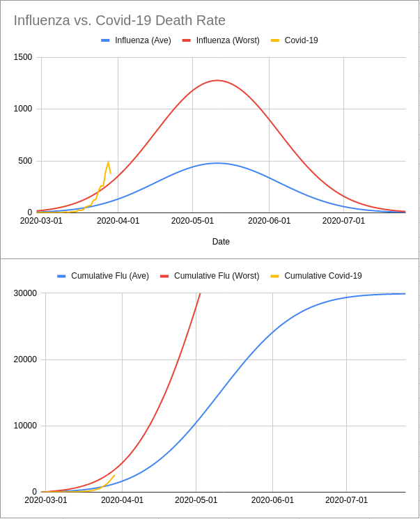 #COVID2019 deaths compared to hypothetical influenza deaths for an "average" year and the worst year in the last decade.#COVID19Pandemicpic.twitter.com/xI8F44pDm3