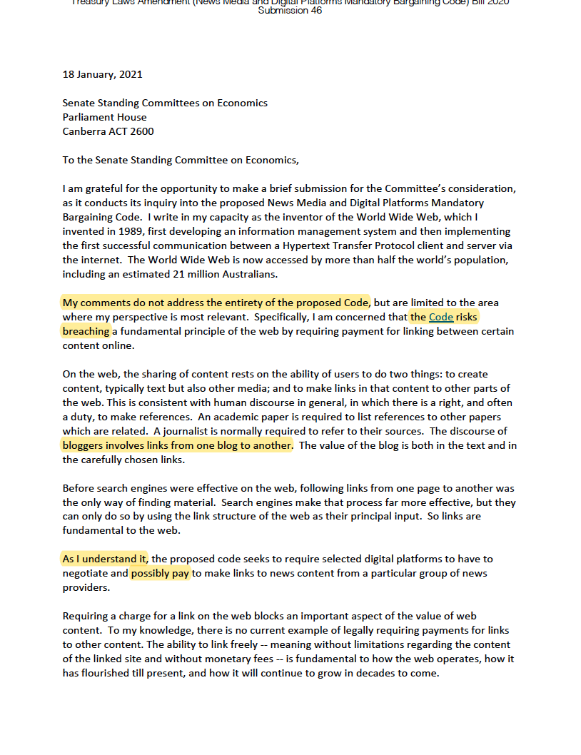 ps didn’t mean to not tag @timberners_lee if he cares to respond or I misinterpreted his position. But it certainly looks narrowly focused on the risk of payment for links spreading globally.
