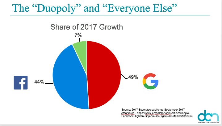 Duopoly. I can’t emphasize enough how much Google (and Facebook) hate being lumped together in the “duopoly.” They argue “but we’re different.” They're not. /9pic.twitter.com/Y7QFbBslbQ